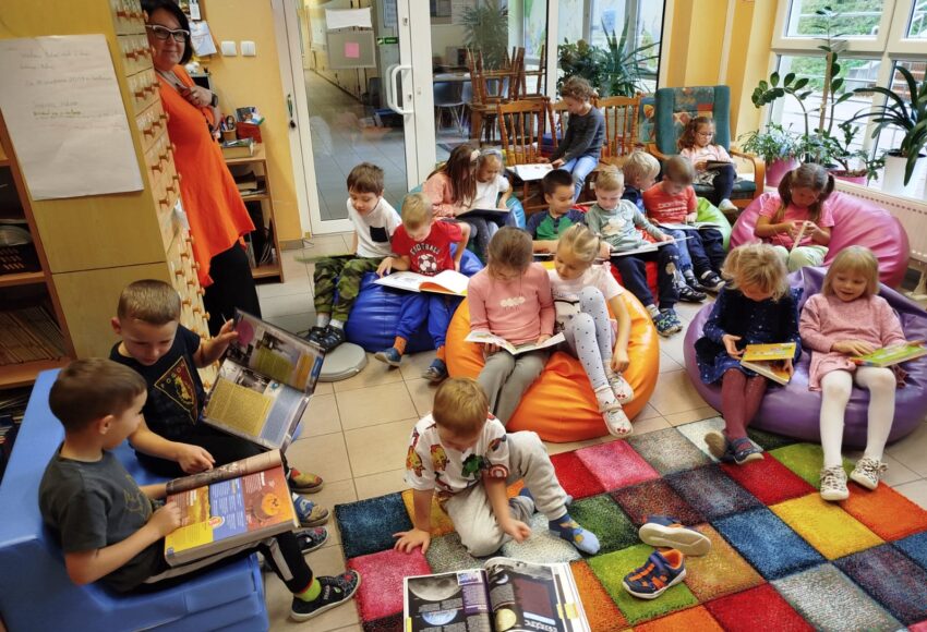 Na początku tygodnia do szkolnej biblioteki przyszła grupa przedszkolna „Mądre Sowy” na teatrzyk Kamishibai. Dzieci wysłuchały i obejrzały dwie bajki „Brzydkie Kaczątko” i „O siedmiu koźlątkach”. Był jeszcze czas na samodzielny wybór książeczek. Beata Makarewicz
