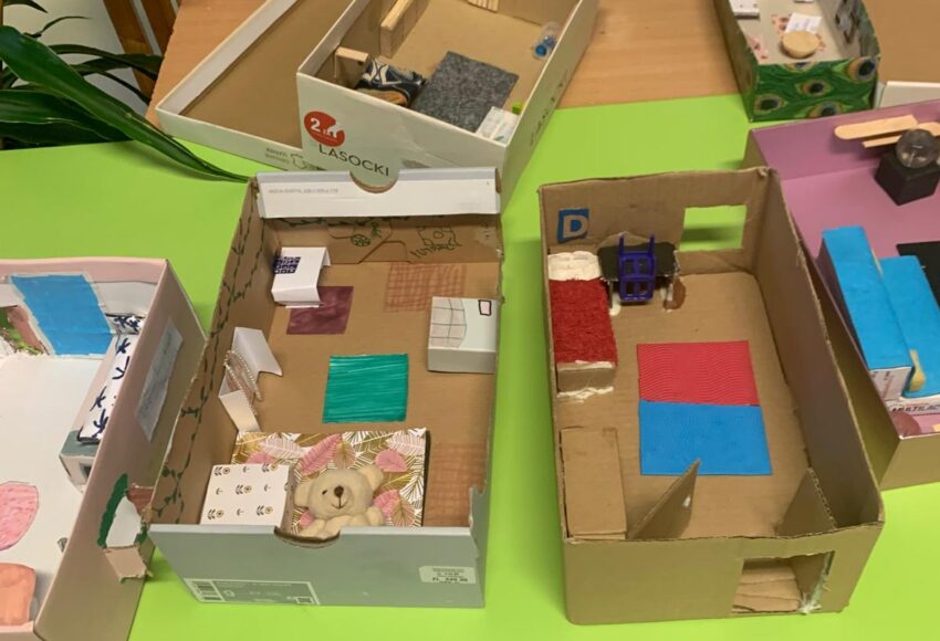 W ramach zajęć z techniki, uczniowie klas szóstych projektowali swój wymarzony pokoik, a następnie wykonywali jego makietę . Poznali przy tym, jak przebiegają etapy budowy domków i jak wielu fachowców jest przy nich zatrudnianych. Magdalena Piaszczyńska