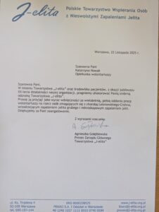 22 listopada 2025 r. w hotelu Radisson Blu w Szczecinie odbyły się Dni Edukacji o Nieswoistych Zapaleniach Jelit, których organizację po raz kolejny wsparli wolontariusze ze Szkolnego Koła Wolontariatu. Zaangażowanie, empatia i pracowitość naszych uczniów znów zostały docenione, czego dowodem są podziękowania złożone na moje ręce.