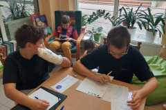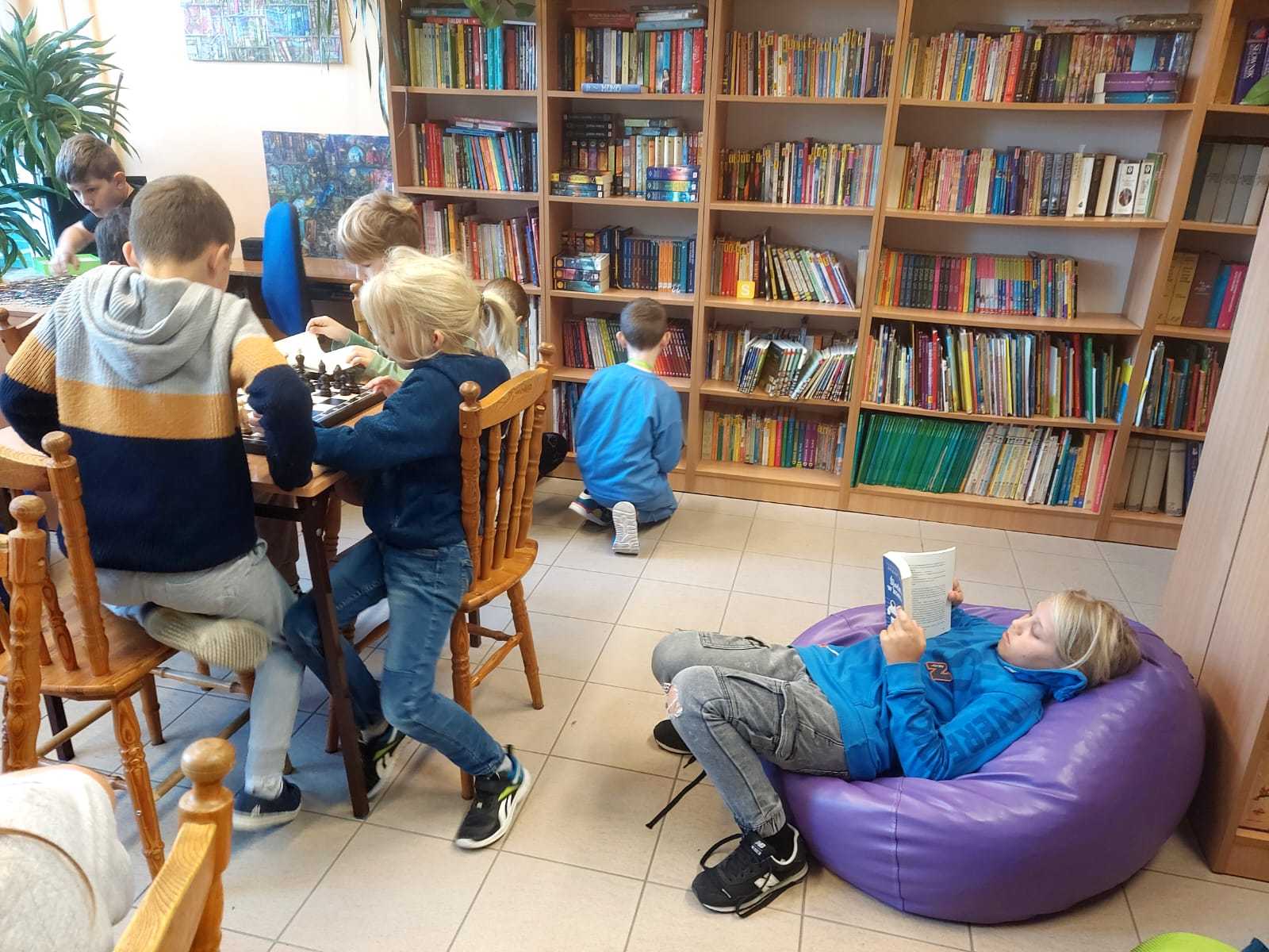 Hasłem tegorocznego Międzynarodowego Miesiąca Bibliotek Szkolnych jest „Poznajmy się w bibliotece” i to się wlaśnie dzieje w naszej szkolnej bibliotece. Uczniowie z różnych klas siadają obok siebie zaczytani, grają w szachy, rozmwiają ze sobą, wymieniają wiedzą na temat zasad gry. Biblioteka to miejsce, gdzie każdy jest mile widziany, gdzie można odpocząć, poczytać, poukładać puzzle, razem pooglądać książkę. Cieszę się, że wybieracie to miejsce na spędzenie przerwy.