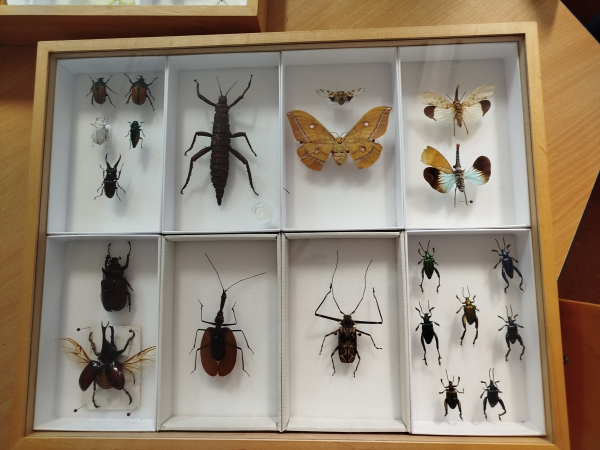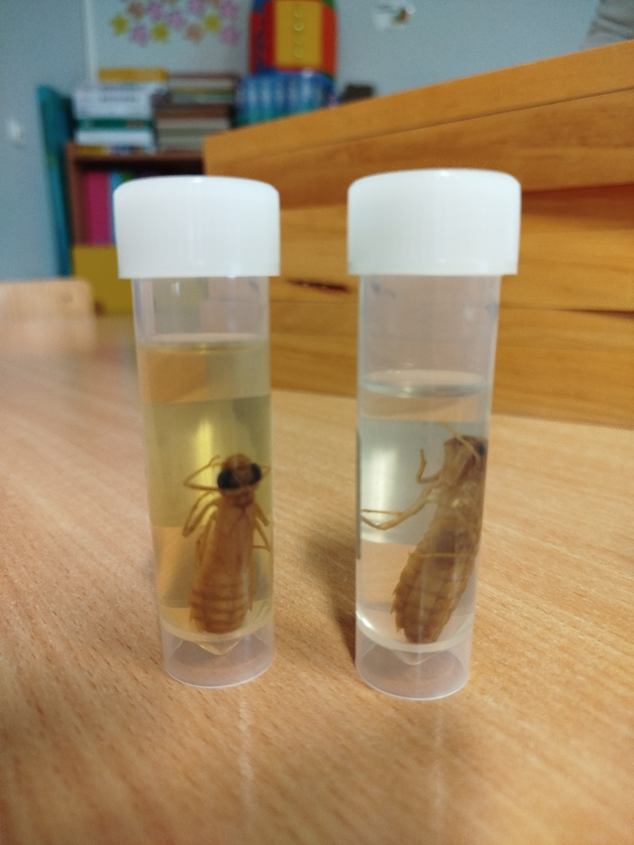 Przedszkolaki miały również okazję obejrzeć owady w profesjonalnych, drewnianych gablotach oraz zobaczyć prezentację multimedialną. Duże wrażenie zrobiła na nich także wylinka owada, którą mogły zobaczyć z bliska.