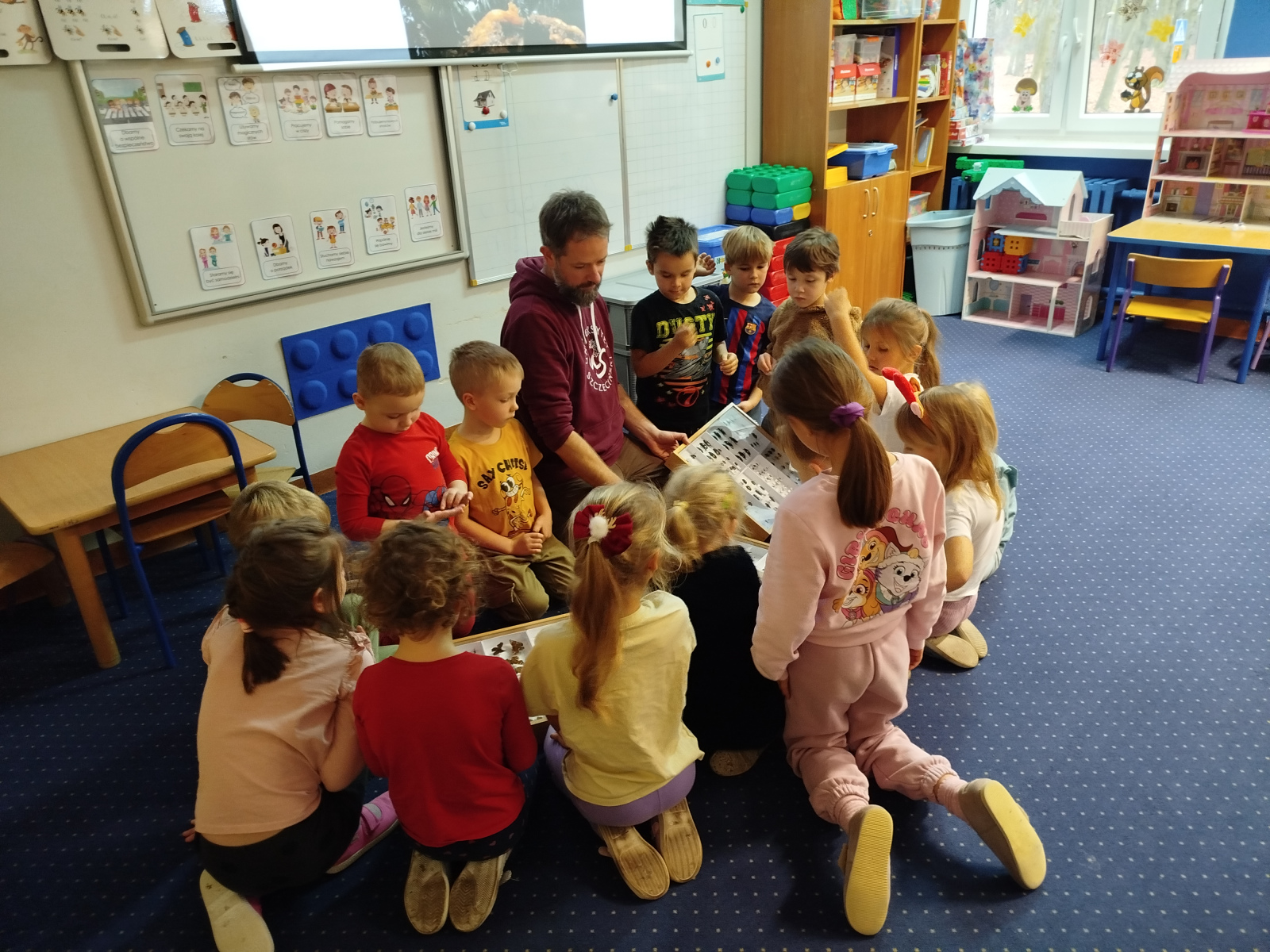W grupie przedszkolnej ,,Mali Odkrywcy” odbyły się wyjątkowe zajęcia edukacyjne, które poprowadził tata jednego z chłopców – pasjonat entomologii. Dzieci przeniosły się w fascynujący świat owadów i mogły poznać ich różnorodność, zwyczaje oraz niezwykłe zdolności.