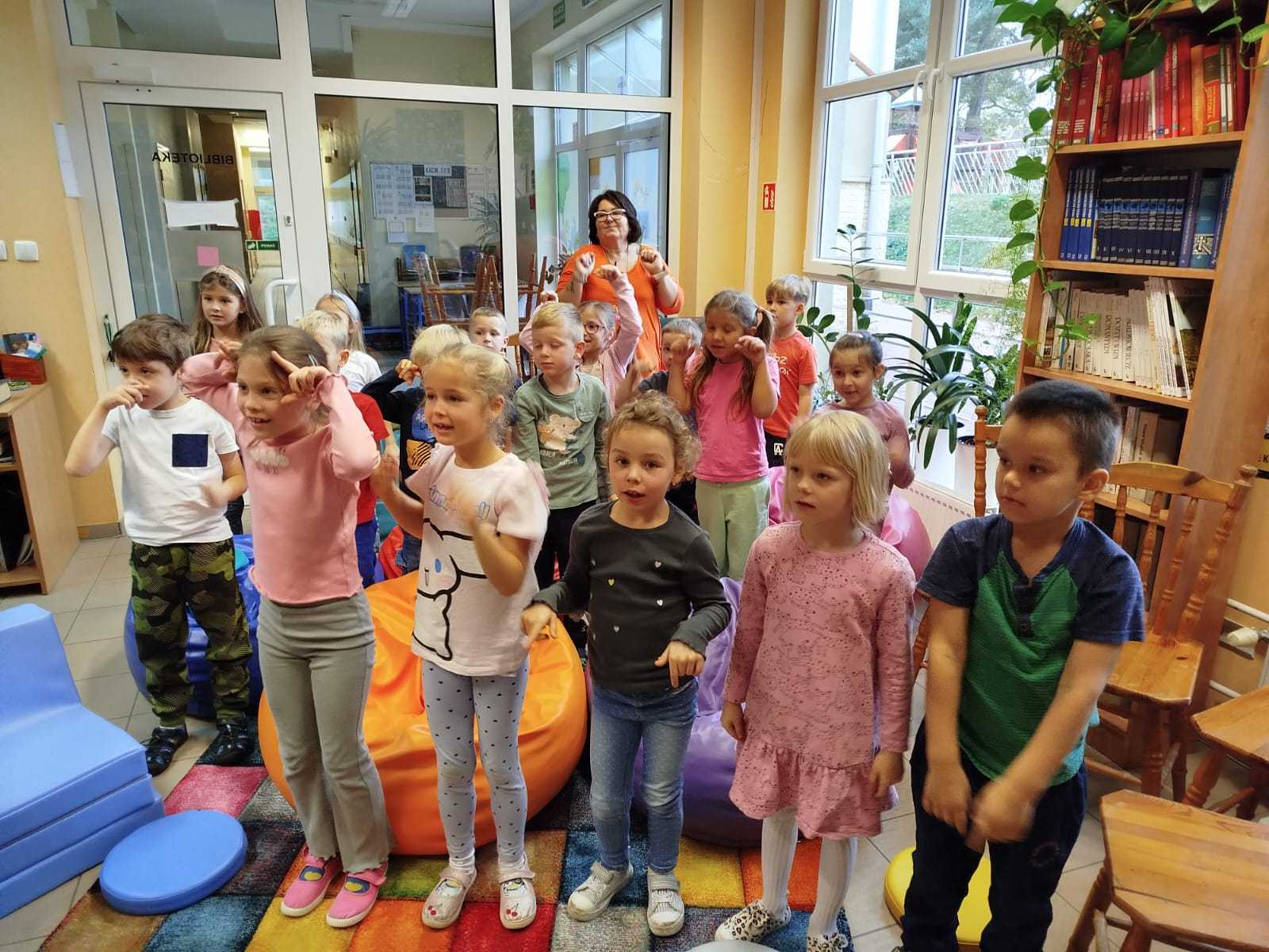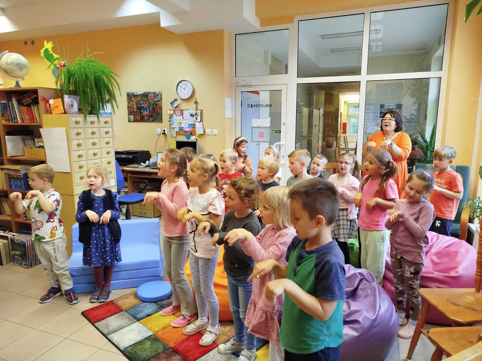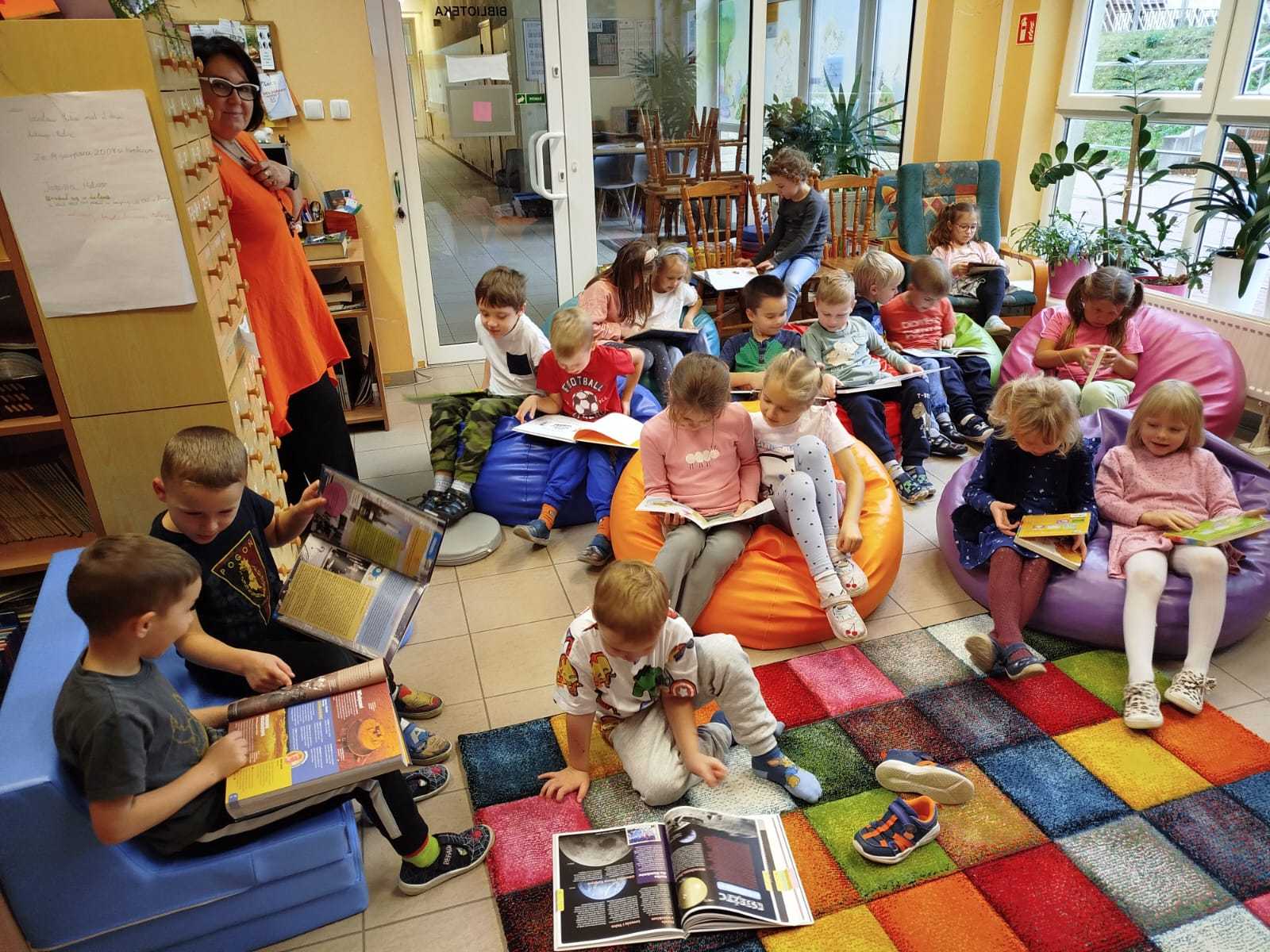 W ramach miesiąca poświęconego promowaniu czytelnictwa grupa przedszkolna „Mali Odkrywcy” wybrała się w niezwykłą podróż do krainy bajek i książek – naszej szkolnej biblioteki.