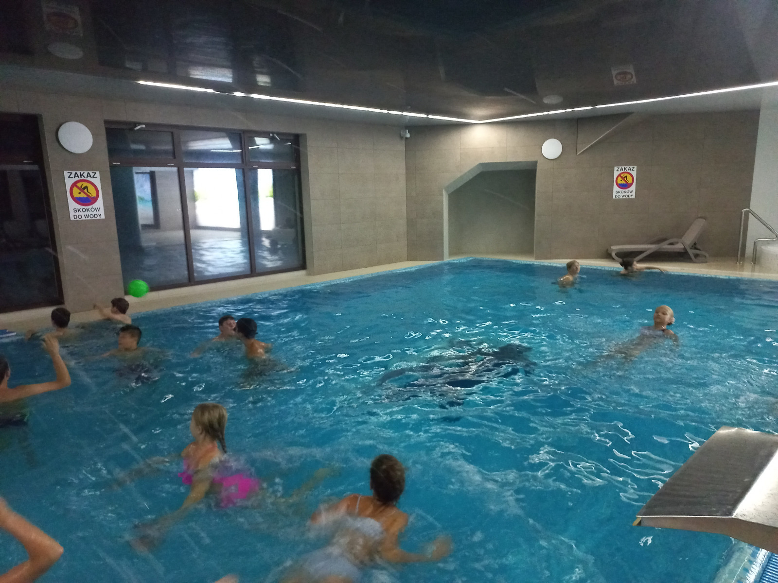 Po pysznej kolacji i wizycie w sklepie wspólnie integrowaliśmy się, grając w karty, tenisa stołowego, siatkówkę czy piłkarzyki. Zazdrościmy też koleżankom gibkości wykazanej w Twisterze! Na koniec jeszcze skorzystaliśmy z basenu. Ależ to była zabawa!